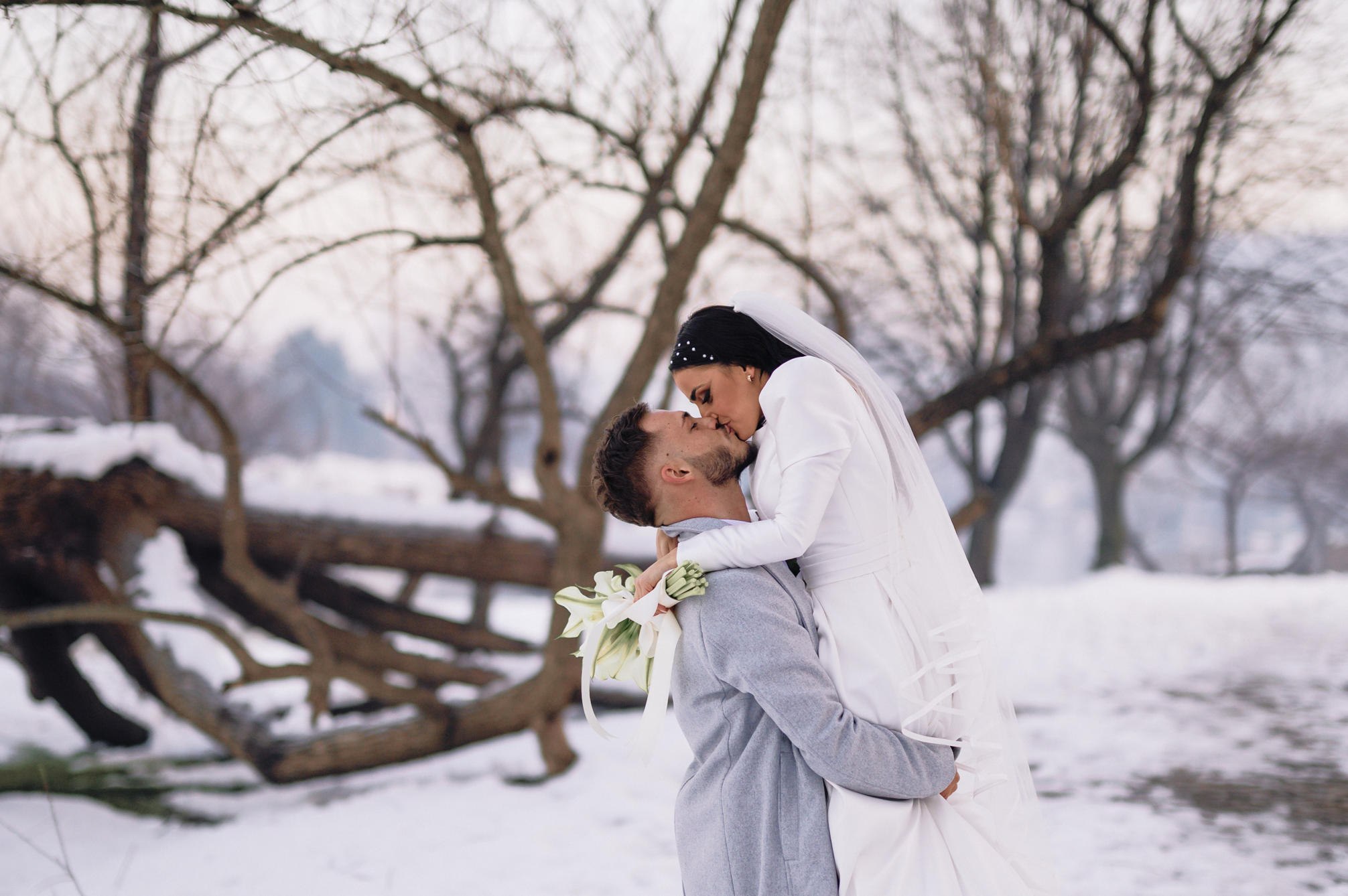 Some weddings are planned long before the official "yes" is even spoken, and Ajla & Edin’s was one of them. Knowing them for years, it was clear from the start that we would be the ones capturing their big day. Ajla, working in a wedding dress studio that collaborates with Demetrios Brides, had the unique opportunity to wear not just one, but three breathtaking Demetrios wedding dresses. Each dress brought a different touch of elegance to the day, complementing the love and warmth that surrounded them. But this wedding wasn’t just about stunning gowns—it was a day shaped by nature itself. A freezing, snow-covered landscape added an unexpected twist to the visuals, leading us in directions we don’t usually take. The cold may have set the scene, but the love between Ajla & Edin, and the warmth of their family, made every moment feel timeless. Despite the winter chill, their story shines through in every frame, reminding us that love is what truly warms the heart.